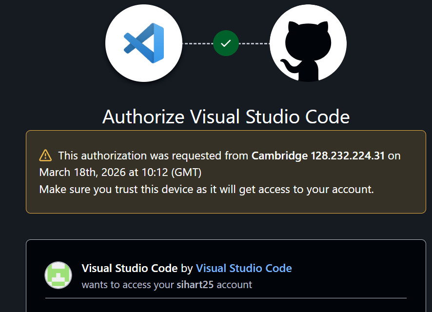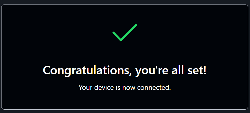 - Copy the URL and open it in your web browser. You will be prompted to sign in with your github.com account to allow the device.