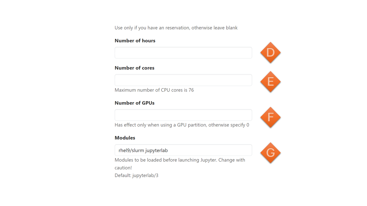 | H | Number of Nodes - You can only request a maximum of 1 node. |